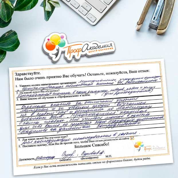 После успешного окончания обучения вы получите документы установленного образца. Высылаем по почте заказным письмом.