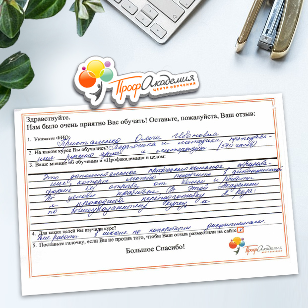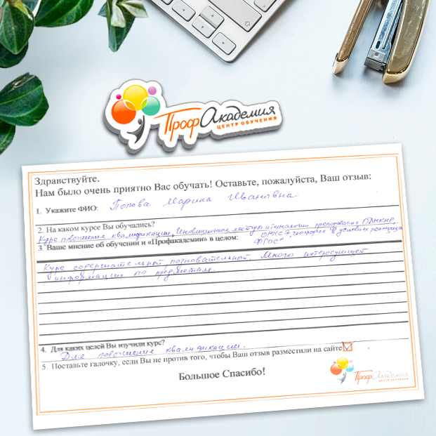 После успешного окончания обучения вы получите документы установленного образца. Высылаем по почте заказным письмом.